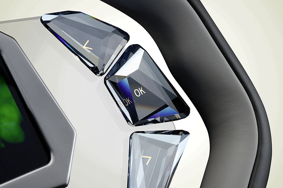 Read moreExperience the next evolution in automotive interiors with the Crystal Steering Wheel—where intuitive functionality meets high-end design. This pioneering concept integrates touch-sensitive, backlit Swarovski crystals into the steering wheel, offering a seamless blend of user interface innovation and luxurious craftsmanship. The result: a transformative, premium interaction at the heart of the driving experience.